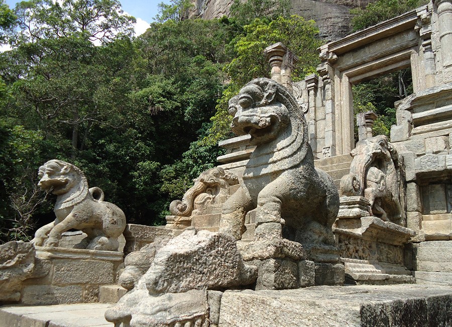 Eagle's nest of a parricide king, Kasyapa, the palace of the summit is served by a narrow staircase that sneaks between giant paws.